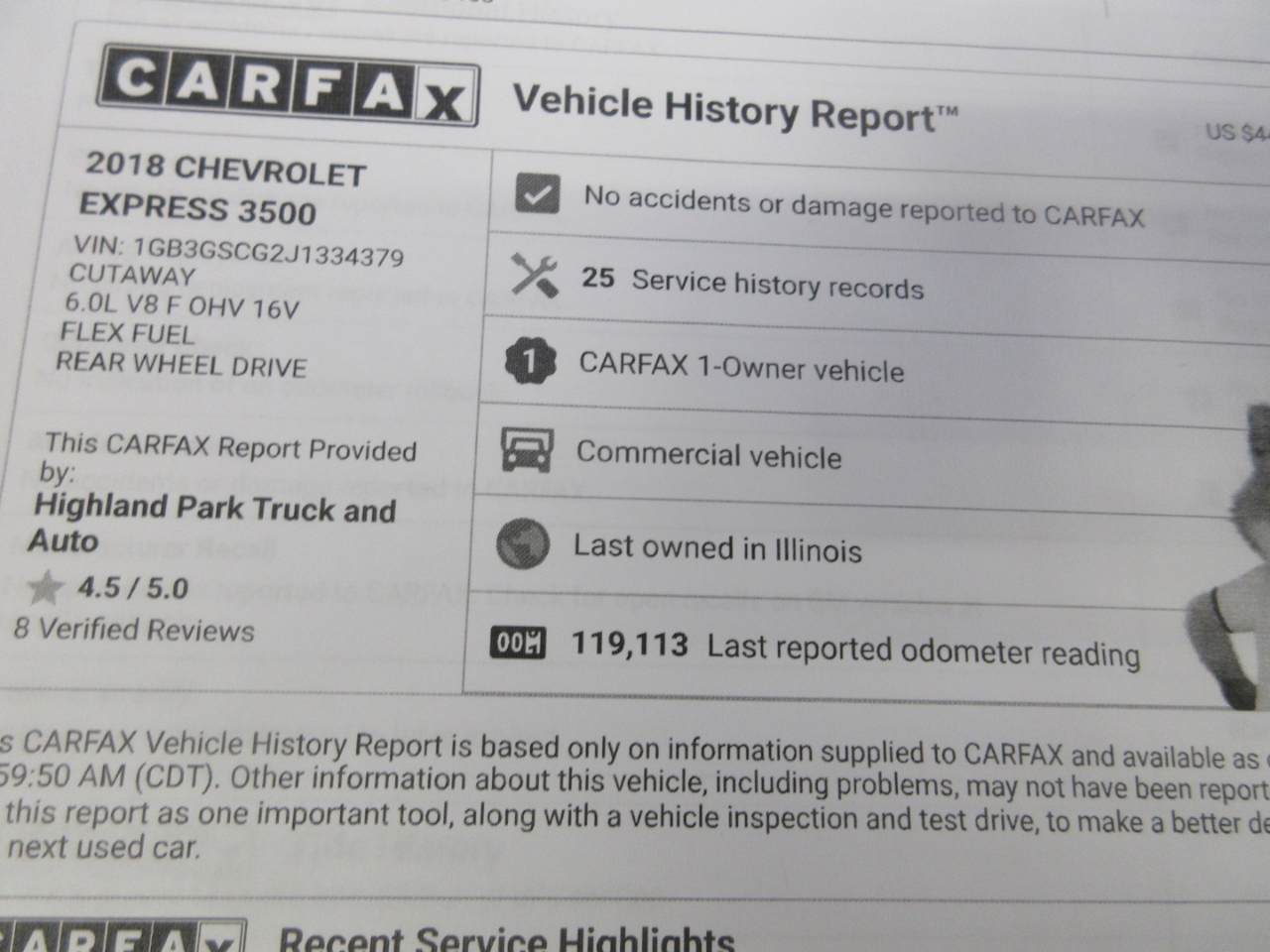 HIGHLAND PARK TRUCK CENTER IS LOCATED ON RT 41 JUST NORTH OF RT 22 IN HIGHLAND PARK, IL. 20 MINUTES NORTH OF CHICAGO AND JUST 20 MILES FROM IL/WI BORDER. CAN'T MAKE IT IN? NO WORRIES, NATION WIDE SHIPPING AVAILABLE!! DISCOUNTED SHIPPING RATES TO ANYWHERE IN THE U.S- LET THE VEHICLE GET DELIVERED RIGHT TO YOUR DOOR STEP. ALL VEHICLES HAVE BEEN SERVICED AND INSPECTED PRIOR TO SALE. EXTENDED SERVICE/WARRANTY CONTRACTS ARE AVAILABLE FOR MOST VEHICLES. JOHN "THE VAN MAN" IS KNOWN FOR THE BEST VANS AND TRUCKS AT THE BEST PRICES. HAVE BEEN SUPPLYING THE WORKING MAN WITH HIGH QUALITY WORK TRUCKS FOR OVER 40 YEARS. OUR CARS AND TRUCKS SELL THEMSELVES, NO HIGH PRESSURE SALES, YOU BUY WHAT YOU WANT, WHEN YOU WANT!!! HUGE SELECTION OF PRE-OWNED LIGHT AND MEDIUM DUTY TRUCKS. ALL CARS AND TRUCKS ARE WHOLESALE PRICED. VISIT US ON THE WEB @ WWW.HPTRUCKAUTO.COM OR CALL TODAY -847-266-3700 - 847-912-8267. NO JUNK SOLD HERE, QUALITY PRE-OWNED CARS AND TRUCKS AT GREAT PRICES!!!